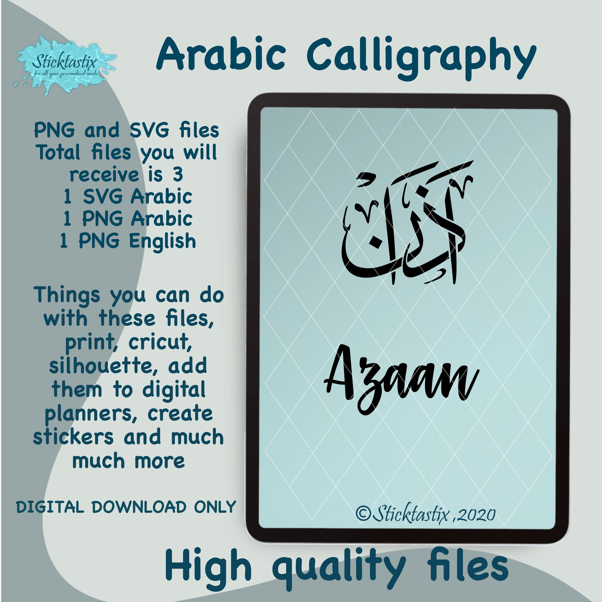 “ Azaan" English and Arabic Calligraphy” Digital Download for Silhouette & Cricut.