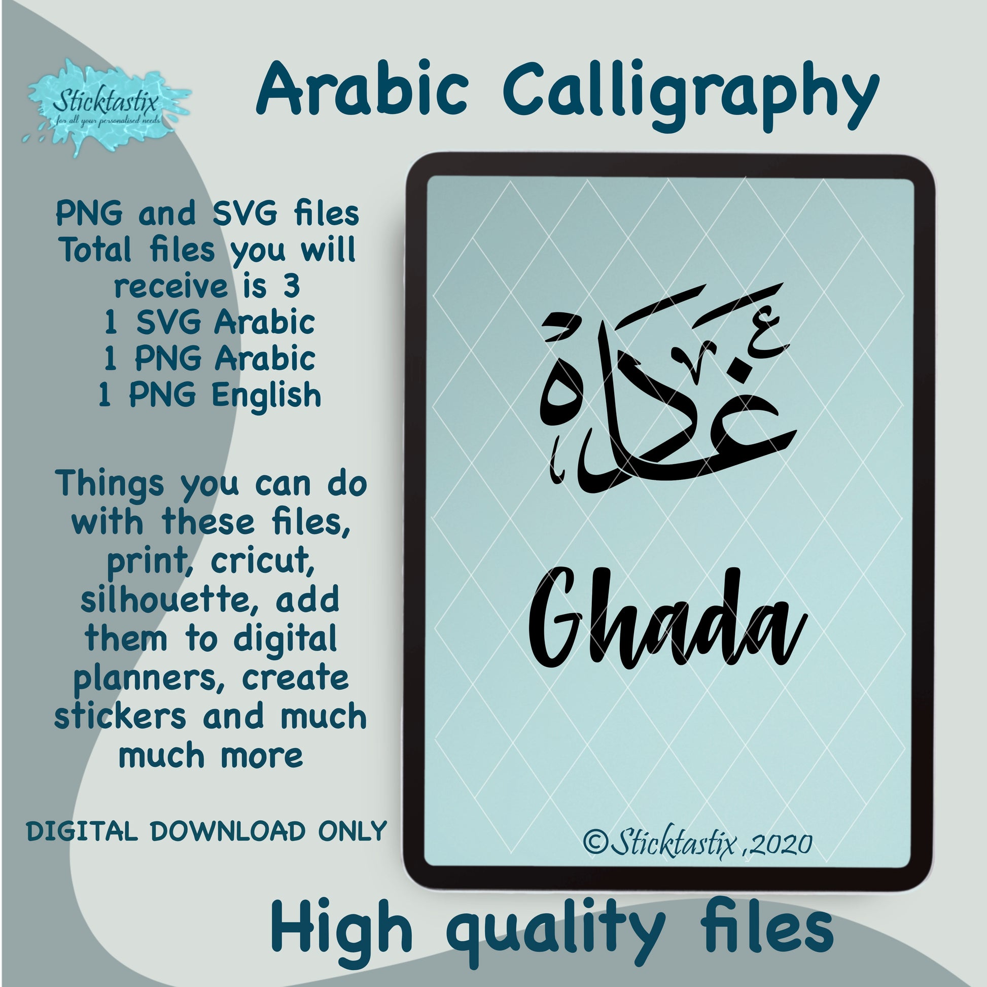 “ Ghada" English and Arabic Calligraphy” Digital Download for Silhouette & Cricut.