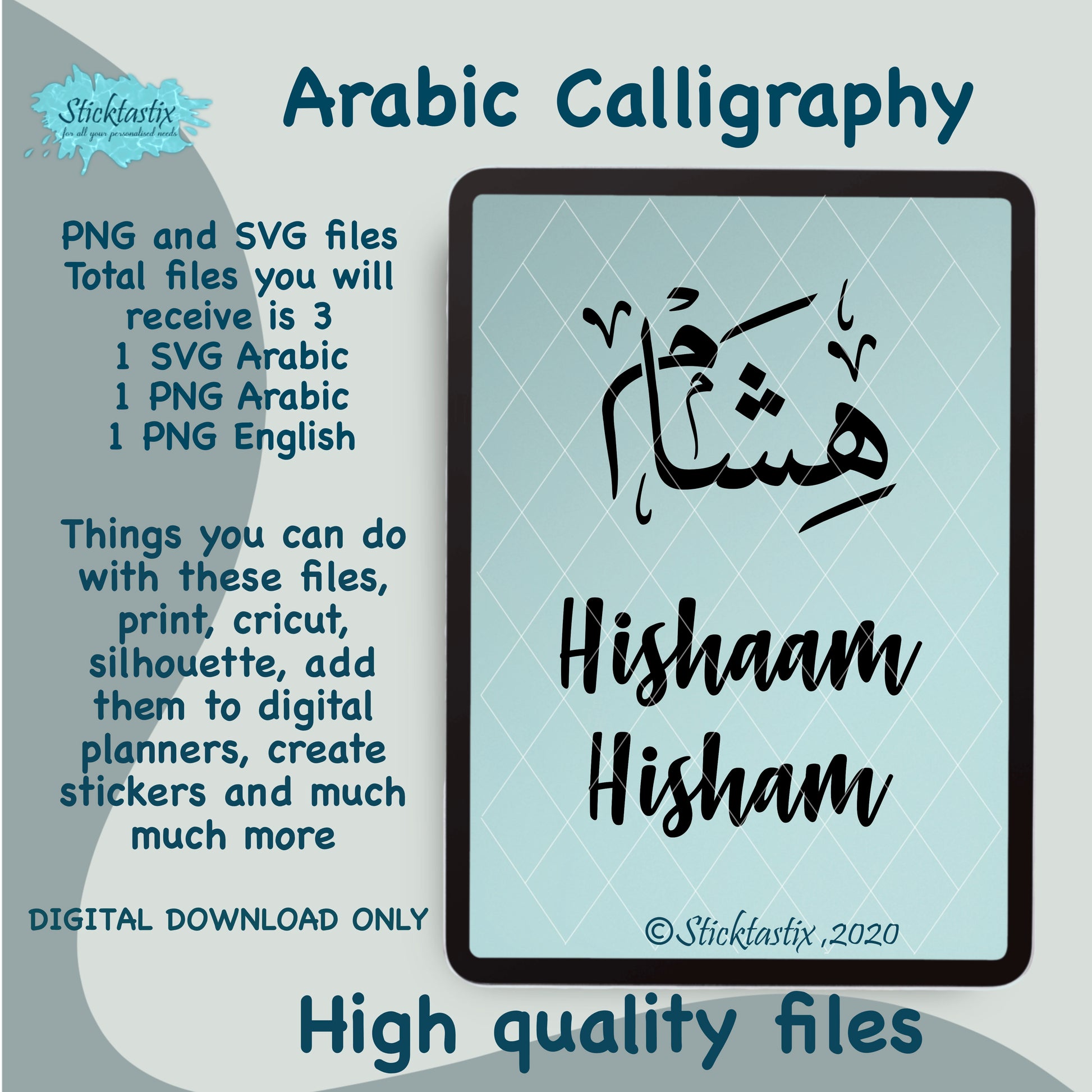 Hisham name in Arabic Calligraphy SVG PNG and English, Digital Download files