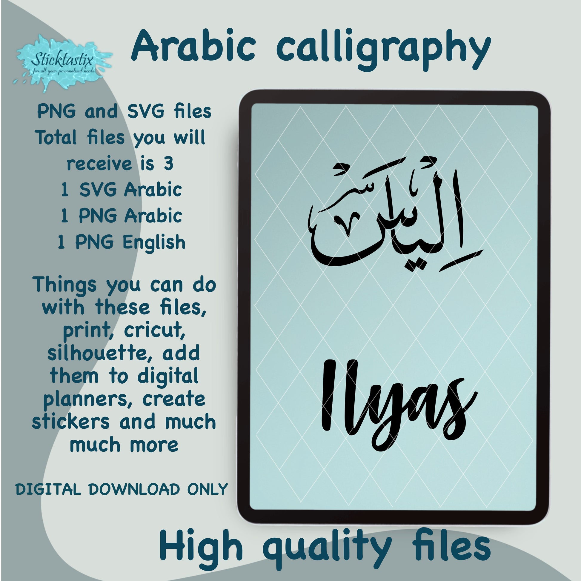 “ Ilyas" English and Arabic Calligraphy” Digital Download for Silhouette & Cricut.