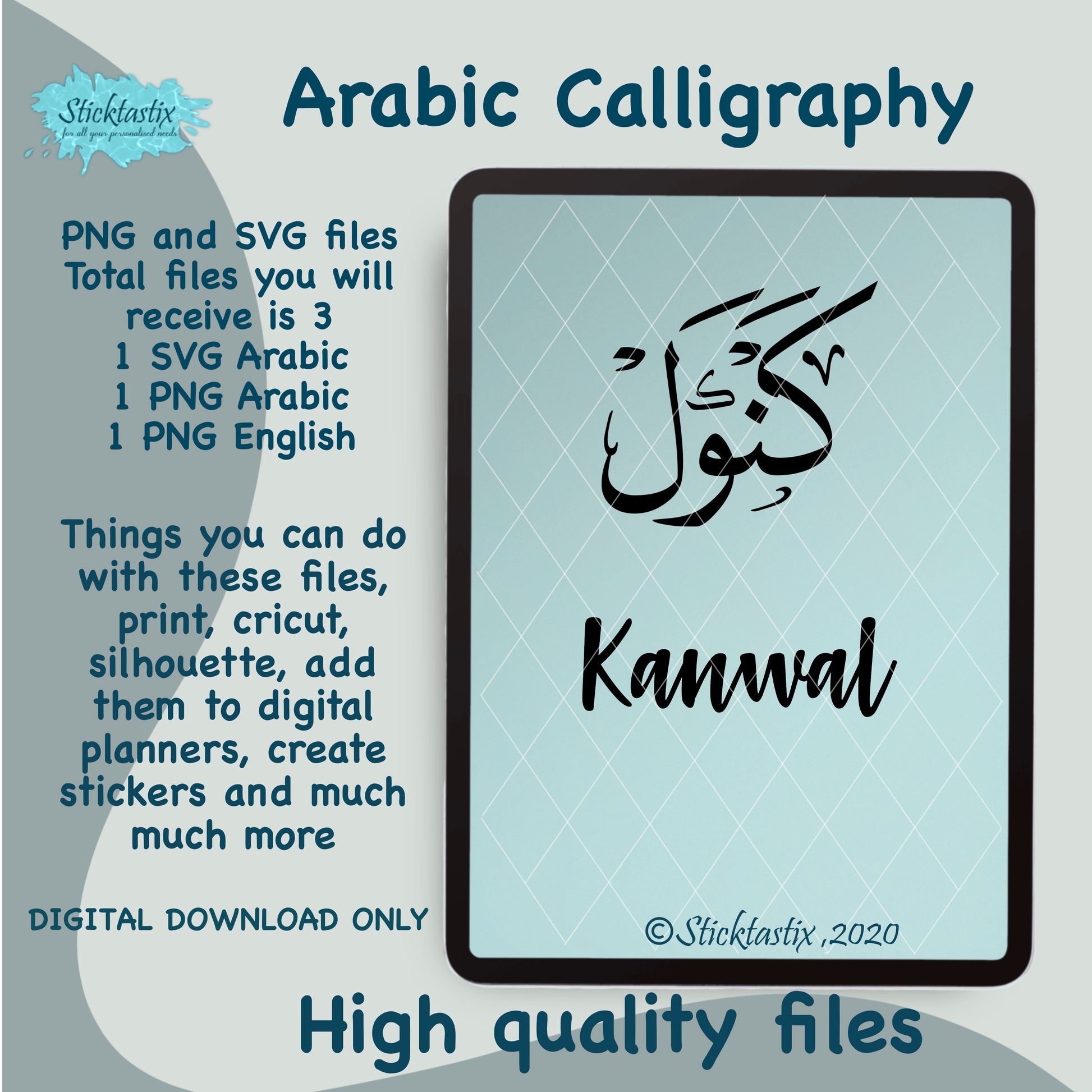 “ Kanwal" English and Arabic Calligraphy” Digital Download for Silhouette & Cricut.