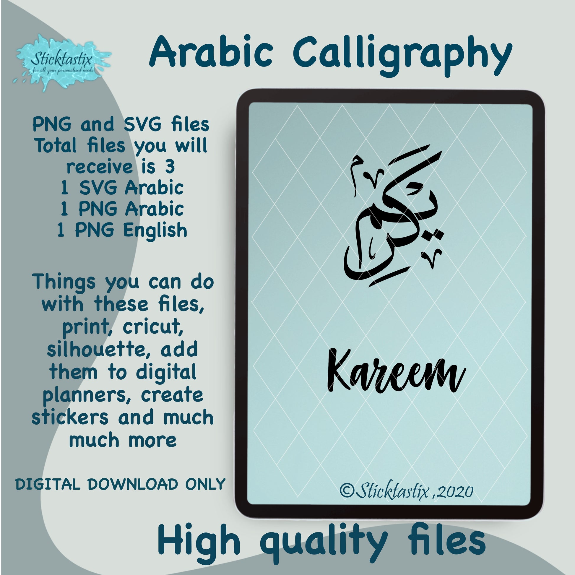 “Kareem " English and Arabic Calligraphy” Digital Download for Silhouette & Cricut.
