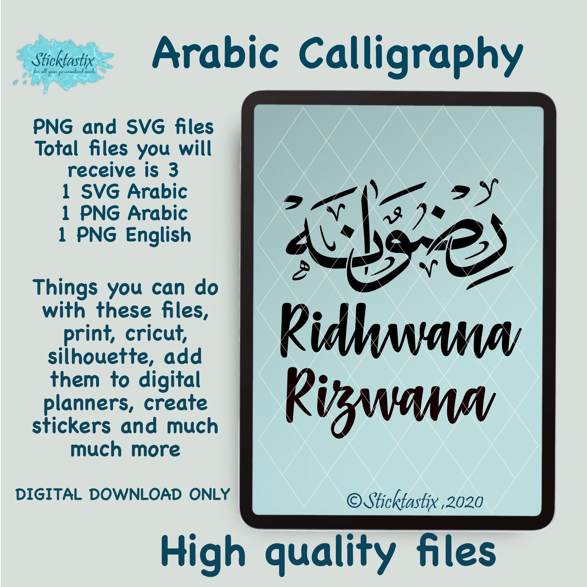 Rizwana Ridhwana Arabic Calligraphy and in English SVG PNG, Digital Download files