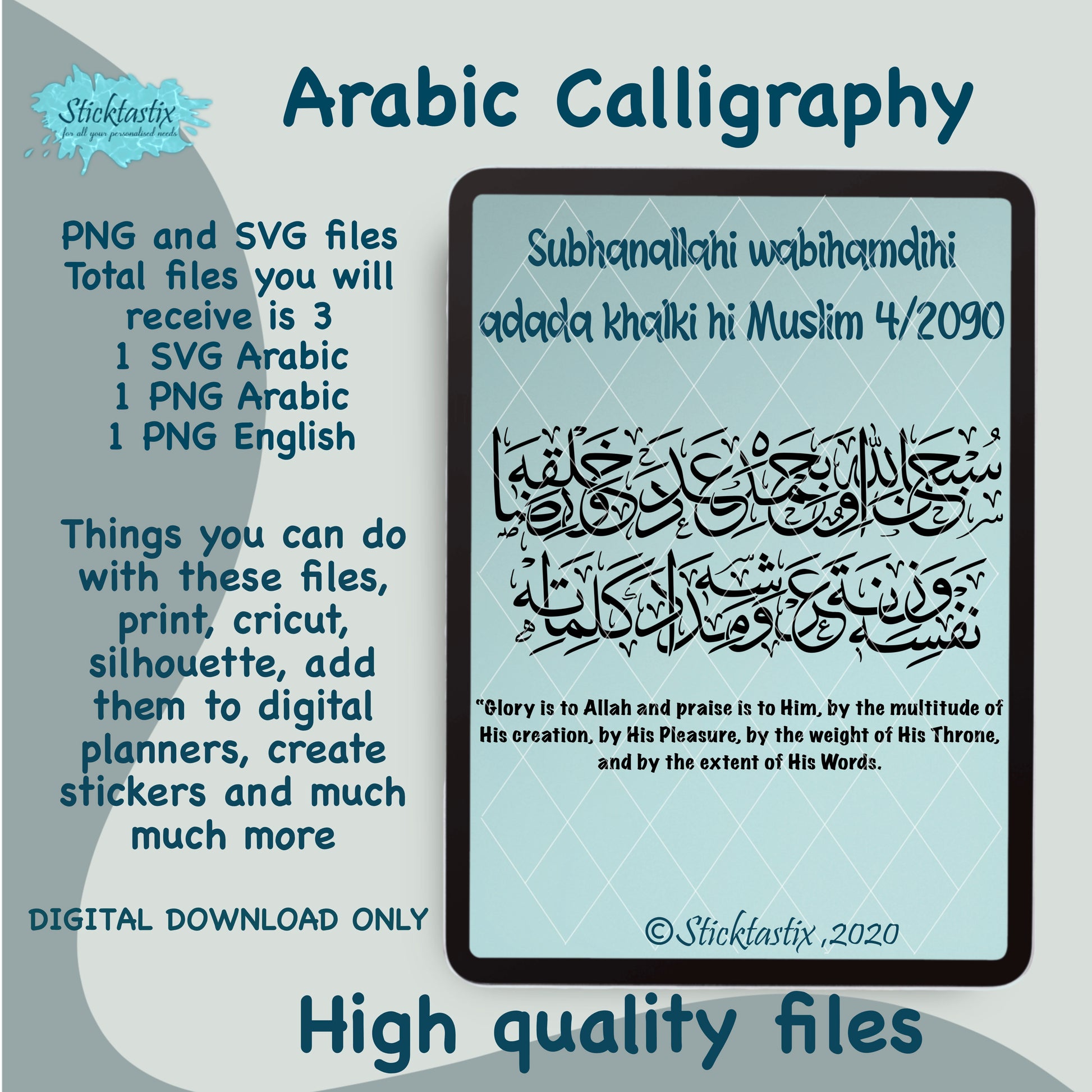 ”Subhanallahi wabihamdihi adada khalki hi Muslim 4/2090" Arabic Calligraphy” Digital Download for Silhouette & Cricut.