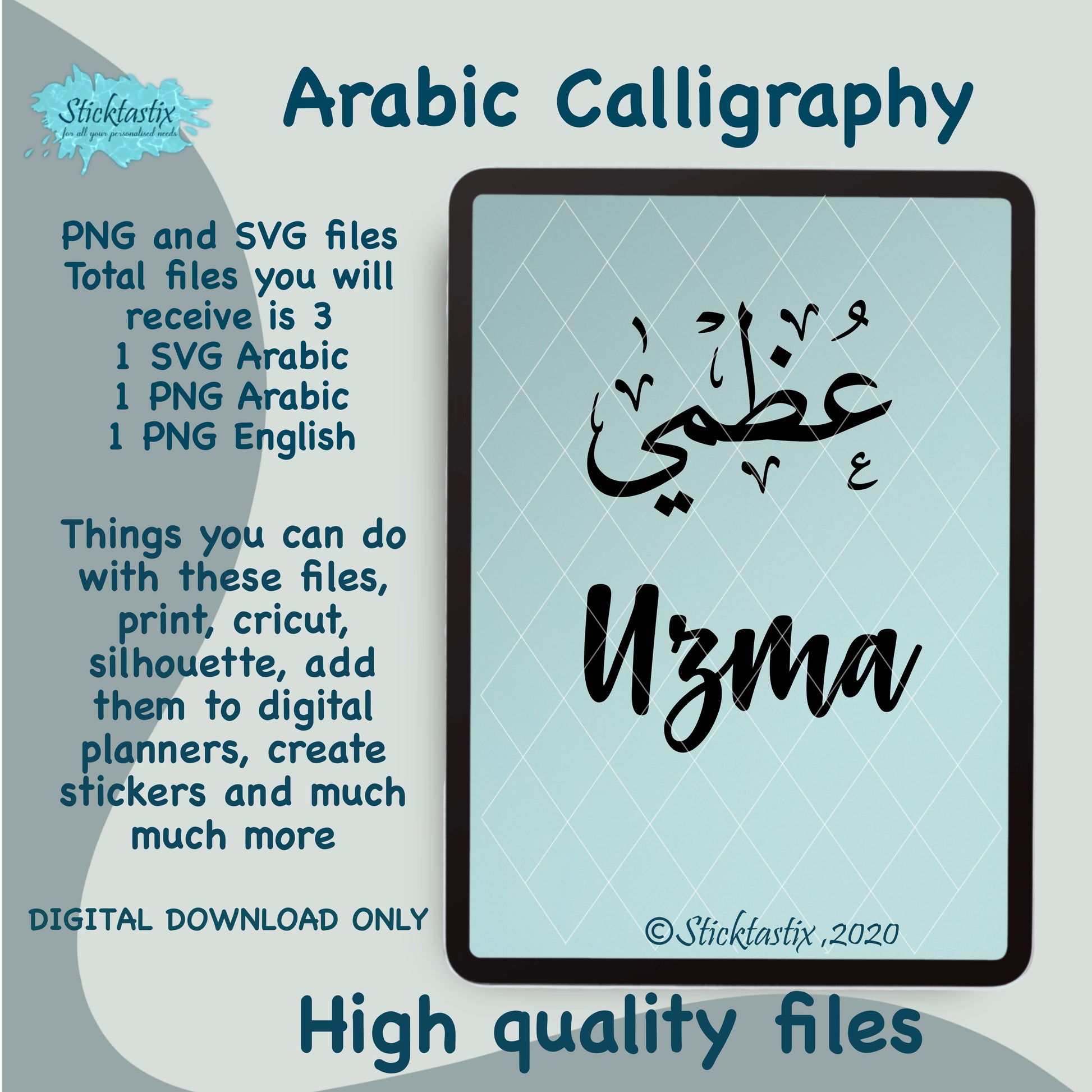 Uzma name in Arabic Calligraphy SVG PNG and English, Digital Download files